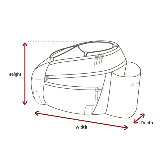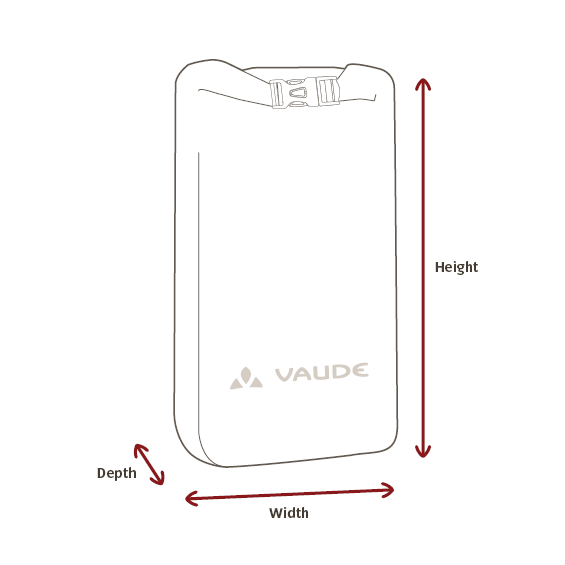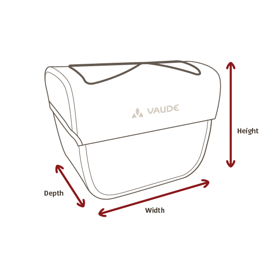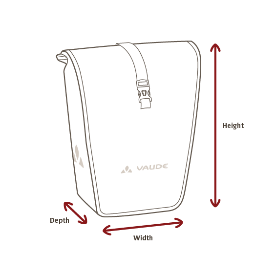Here you can see where the height, width and depth of VAUDE panniers are measured. Please note that the widest part of the article is always indicated or measured.